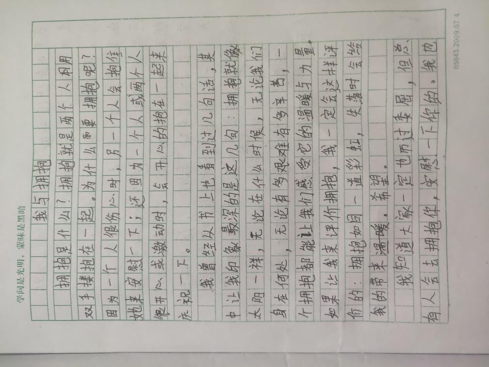我与拥抱 热435 类别:叙事 发表时间:2021-09-15 18:21 已有 436 次阅读 指导老师:董顺心 所属学校:中牟县平安路学校