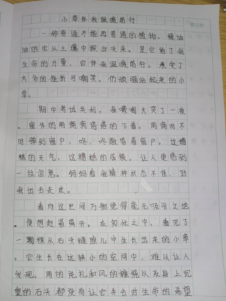 小草伴我温暖前行 热643 类别:记叙 发表时间:2021-06-19 23:29 已有 644 次阅读 指导老师:许翠红 所属学校:登封市君召第一初级中学