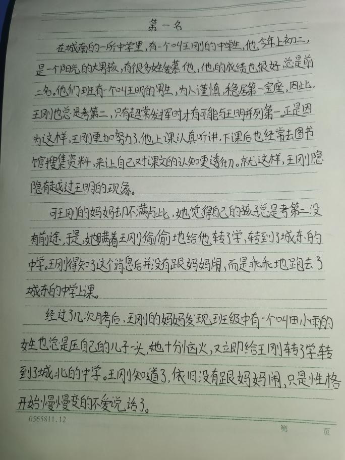 第一名 热980 类别:原创 发表时间:2021-08-25 17:43 已有 981 次阅读 指导老师:王霞 所属学校:中牟县姚家镇中心小学
