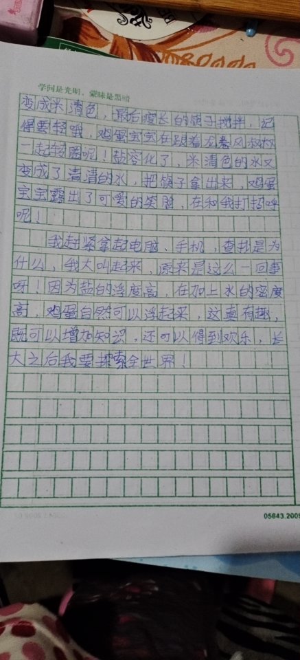 那是一次神奇鸡蛋浮气的尝试 热330 类别:记叙 发表时间:2021-07-12 12:42 已有 331 次阅读 指导老师:徐瑞敏 所属学校:中牟县直第一小学