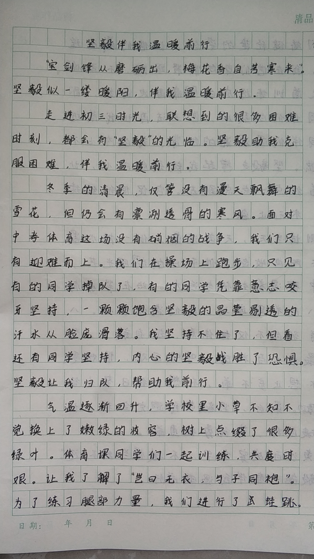 坚毅伴我温暖前行 热594 类别:记叙 发表时间:2021-07-20 14:30 已有 594 次阅读 指导老师:白素杰 所属学校:新郑市正商外国语中学