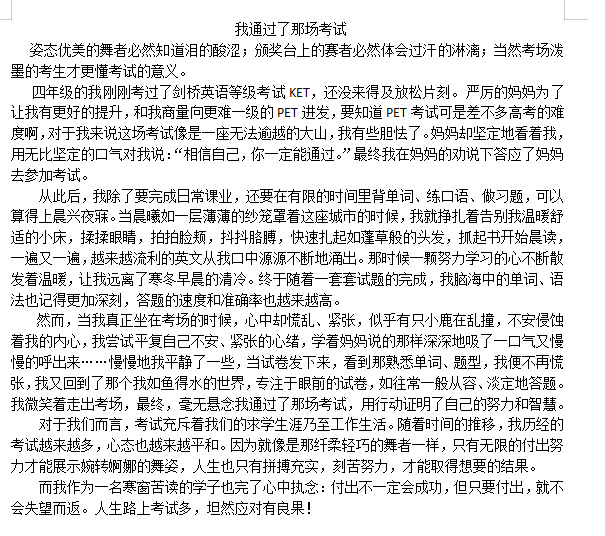 我通过了那场考试 热407 类别:记叙 发表时间:2021-07-26 07:48 已有 408 次阅读 指导老师:刘梦华 所属学校:郑州市第三十四中学
