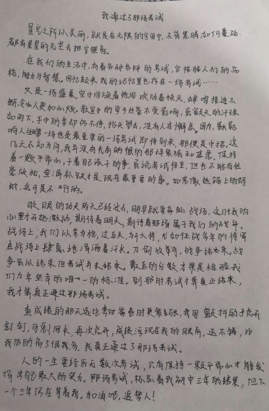 我通过了那场考试 热363 类别:记叙 发表时间:2021-07-20 13:14 已有 364 次阅读 指导老师:白素洁 所属学校:新郑市正商外国语中学