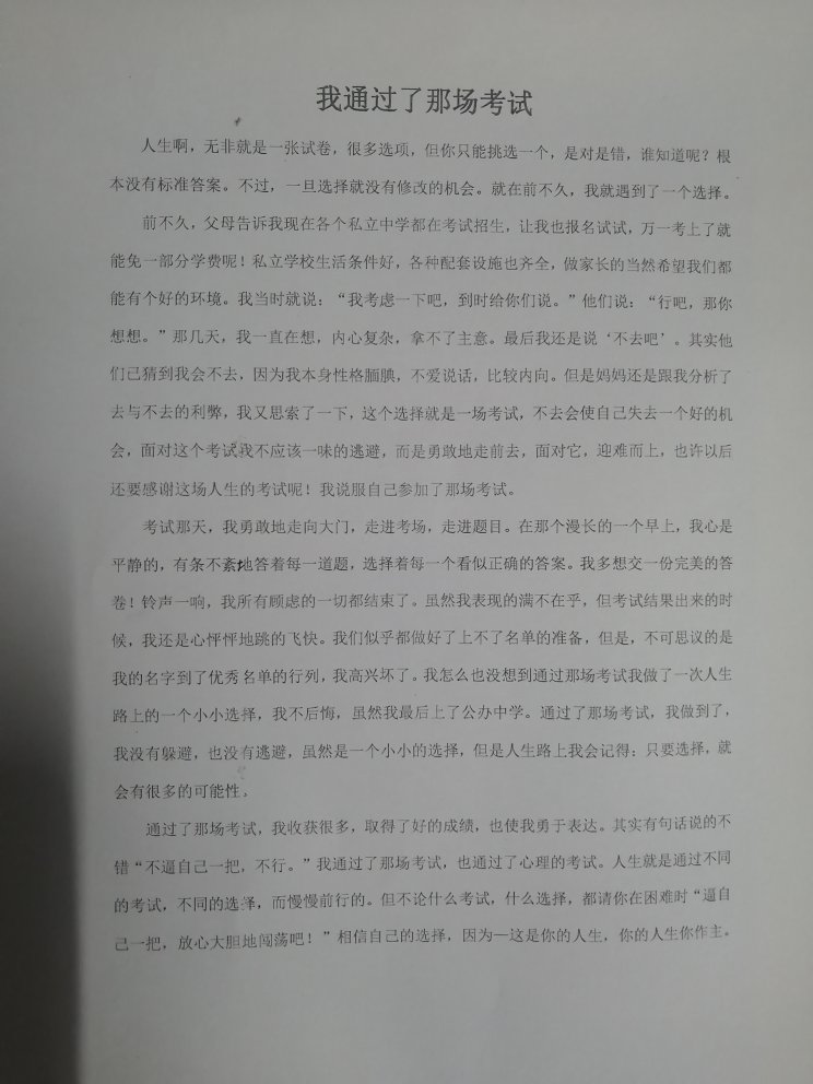 我通过了那场考试 热539 类别:记叙 发表时间:2021-07-27 22:17 已有 540 次阅读 指导老师:王利敏 所属学校:巩义市第四初级中学