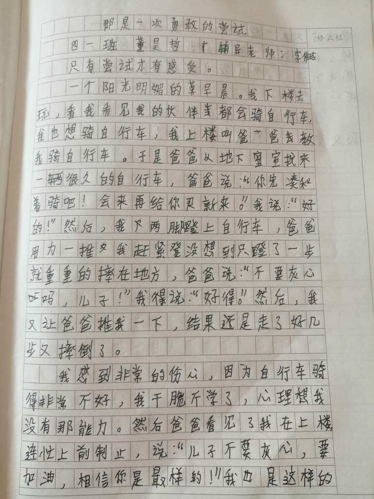 那是一次勇敢的尝试 热645 类别:叙事 发表时间:2021-09-09 17:20 已有 647 次阅读 指导老师:李伟玲 所属学校:中牟县平安路学校
