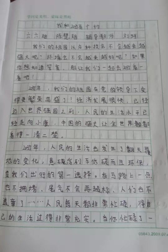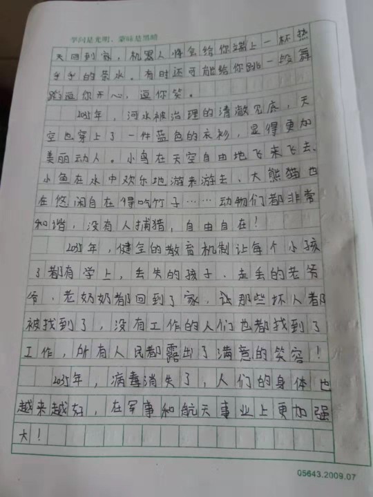 我和2035有个约 热648 类别:叙事 发表时间:2021-09-12 13:36 已有 649 次阅读 指导老师:刘珂 所属学校:中牟县平安路学校