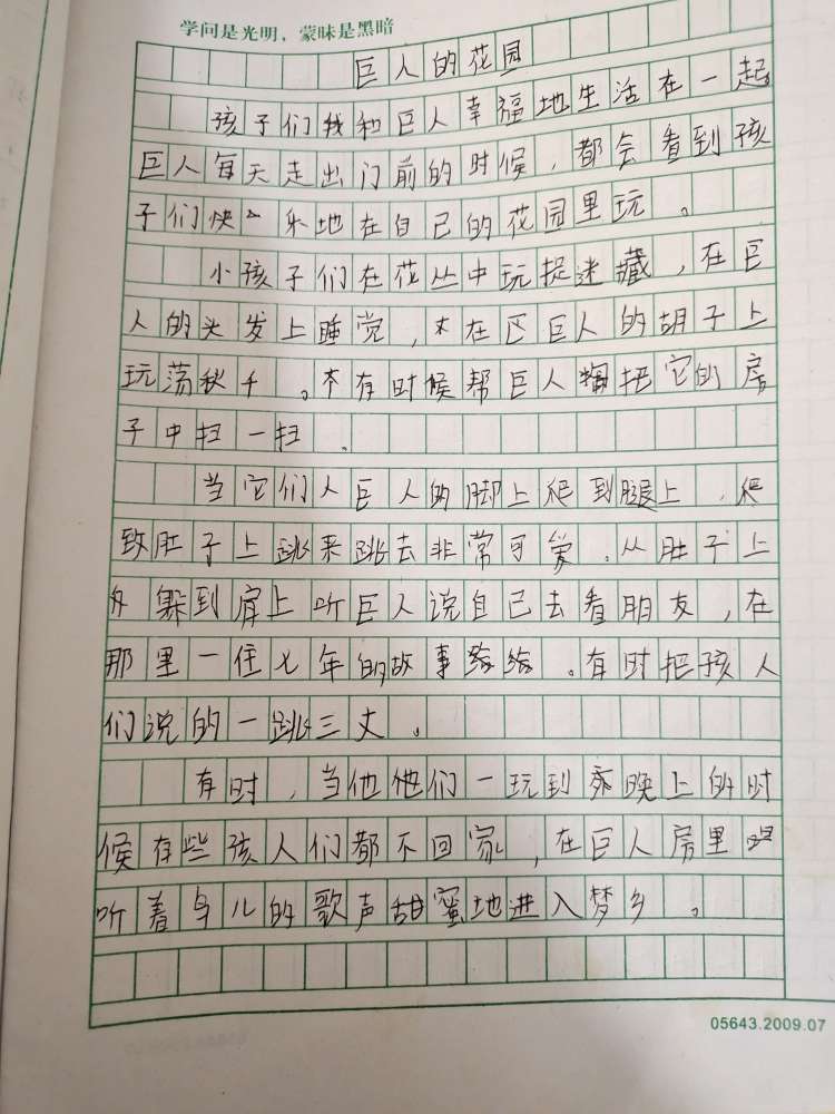 巨人的花园 热1477 类别:其他 发表时间:2021-07-29 12:00 已有 1478 次阅读 指导老师:杨慧 所属学校:中牟县平安路学校