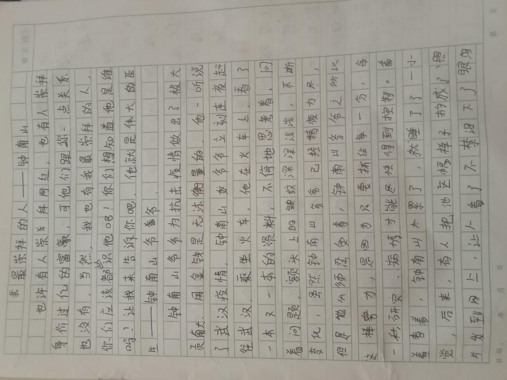 我最崇拜的人——钟南山 热484 类别:记叙 发表时间:2021-09-14 16:51 已有 485 次阅读 指导老师:付亚萍 所属学校:中牟县大孟镇芦岗小学