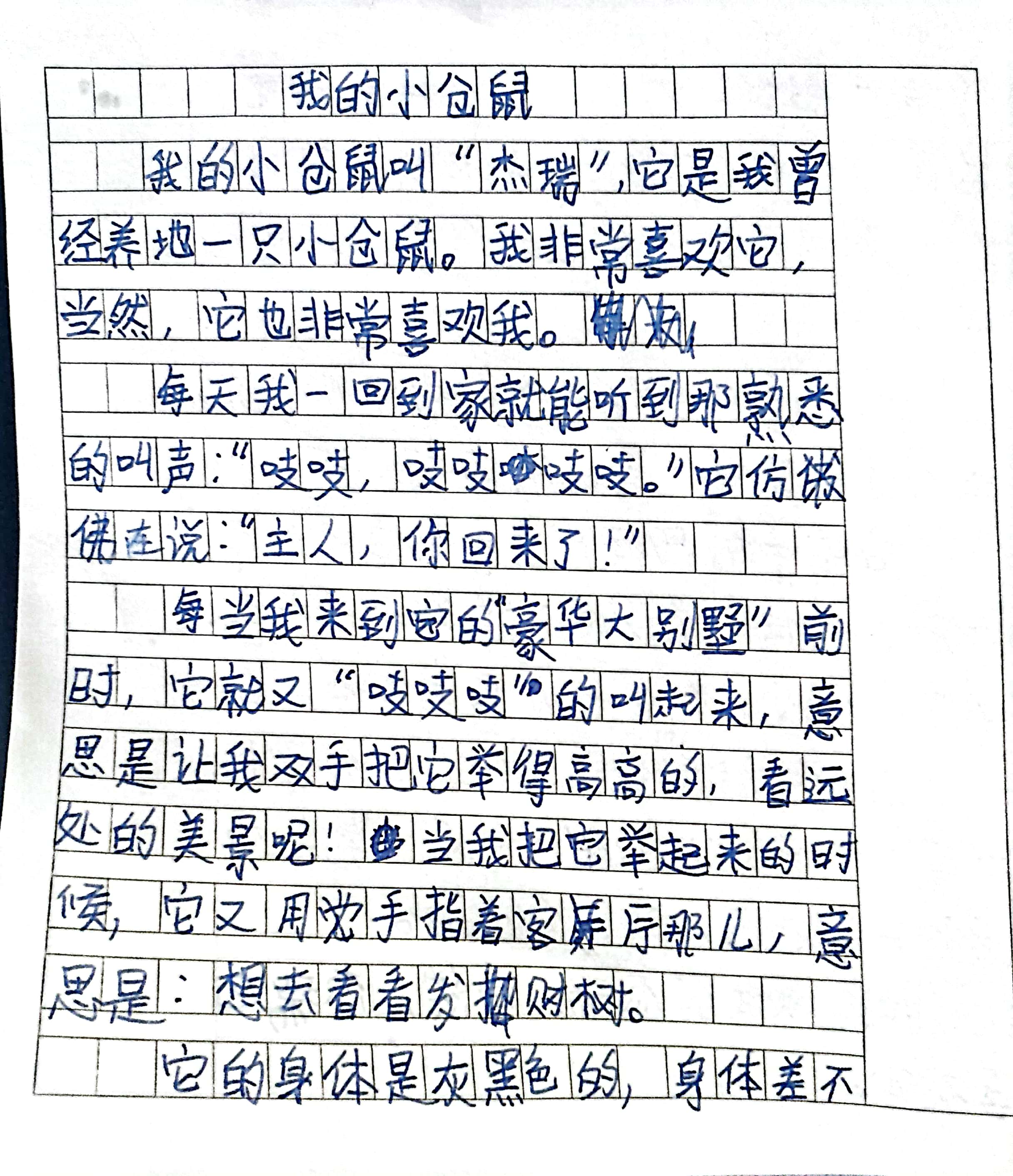 我的小仓鼠 热701 类别:状物 发表时间:2021-08-29 16:21 已有 702 次阅读 指导老师:杨婷婷 所属学校:郑州市金水区农科路小学