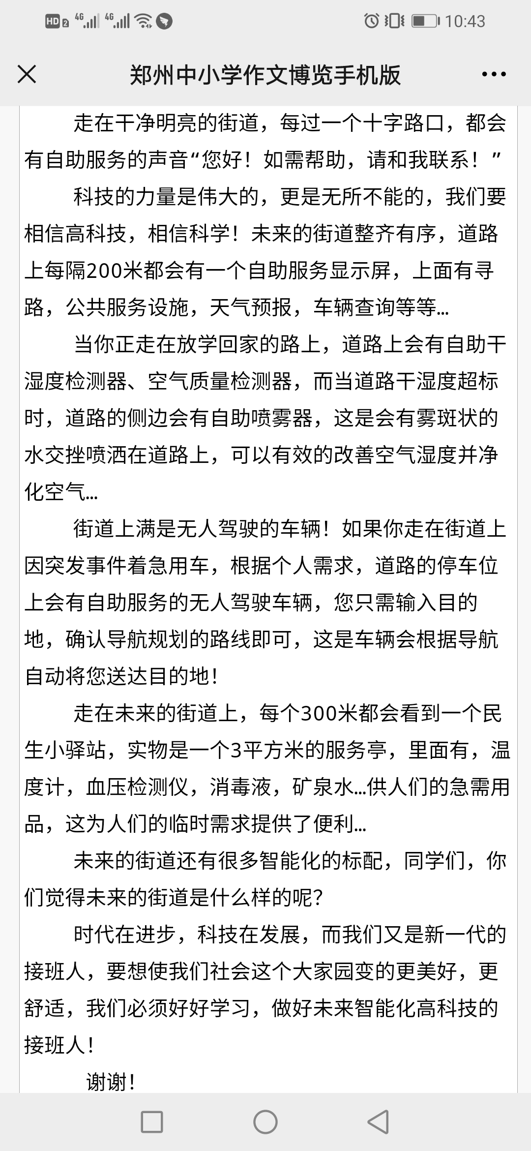 未来的街道 热472 类别:状物 发表时间:2021-08-09 10:45 已有 473 次阅读 指导老师:赵艳艳 所属学校:巩义市建设路小学