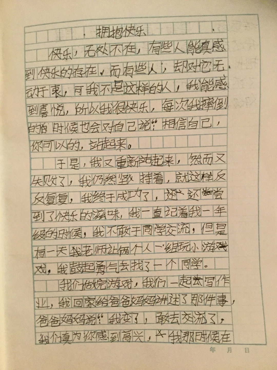 我与拥抱 热518 类别:记叙 发表时间:2021-09-15 14:20 已有 519 次阅读 指导老师:庆韵婵 所属学校:中牟县城东路小学