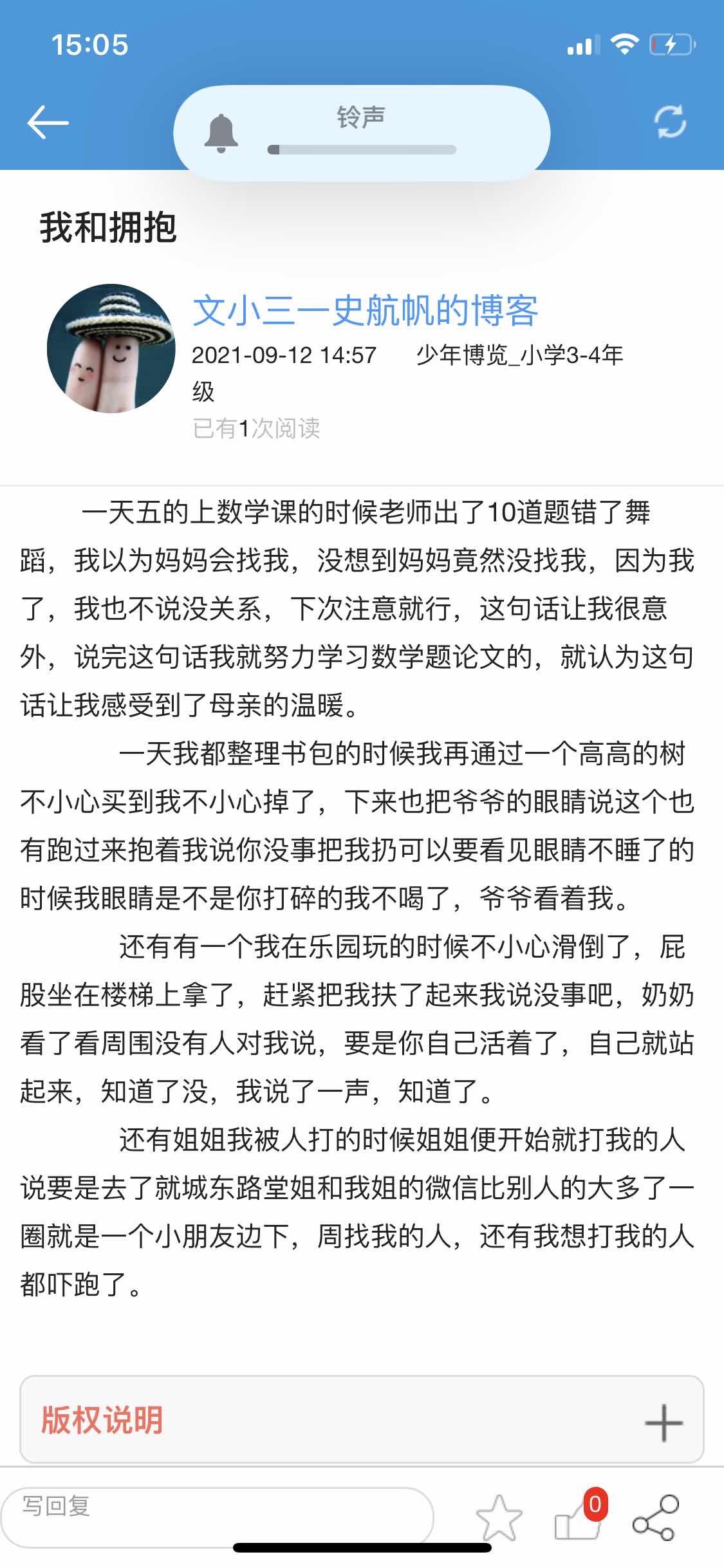 我与拥抱 热549 类别:写人 发表时间:2021-09-12 15:07 已有 550 次阅读 指导老师:衡慧婷 所属学校:中牟县文明路小学