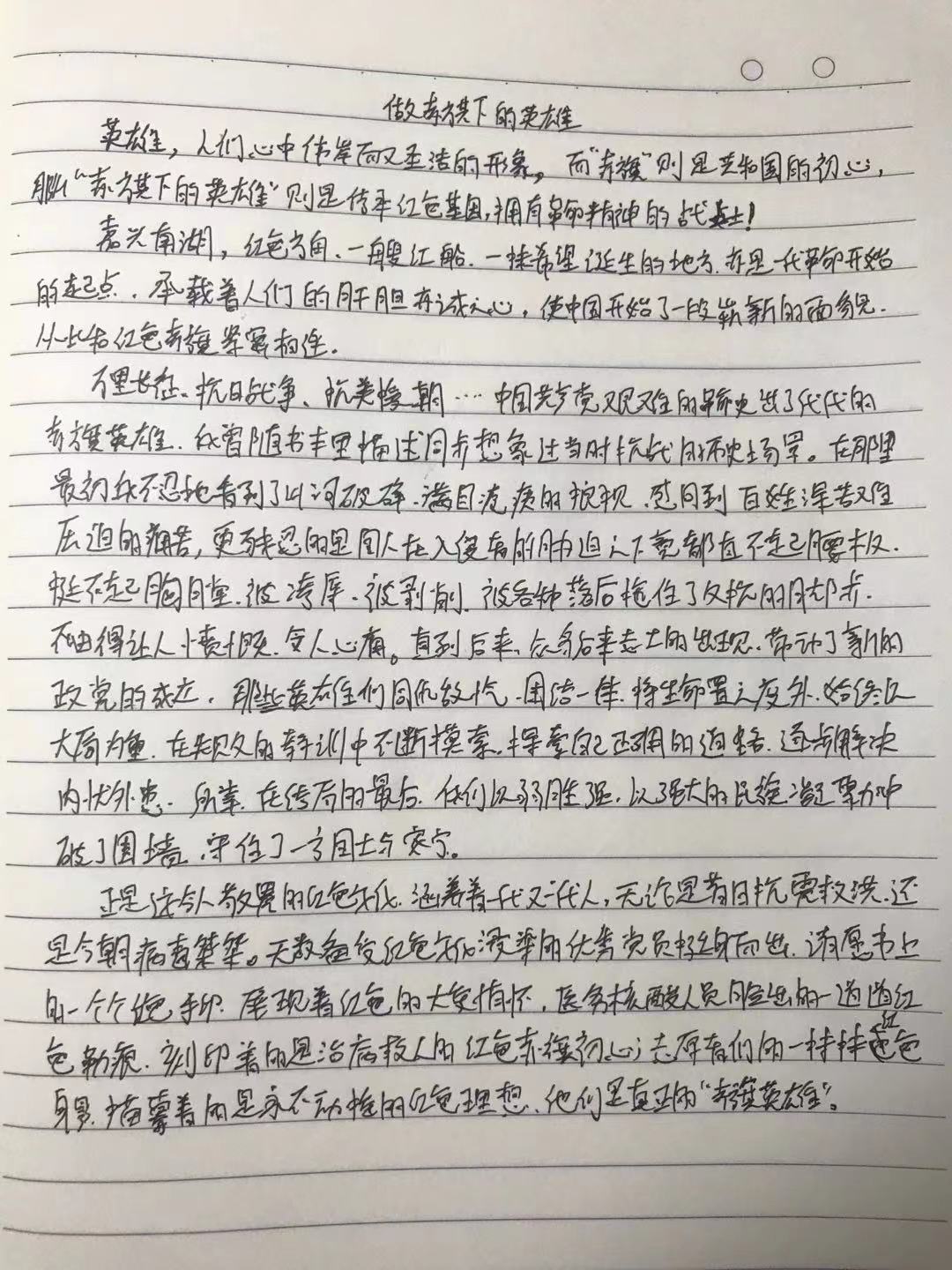 赤旗下的英雄 热321 类别:记叙 发表时间:2021-09-05 12:24 已有 322 次阅读 指导老师:刘洋 所属学校:新郑市实验高级中学