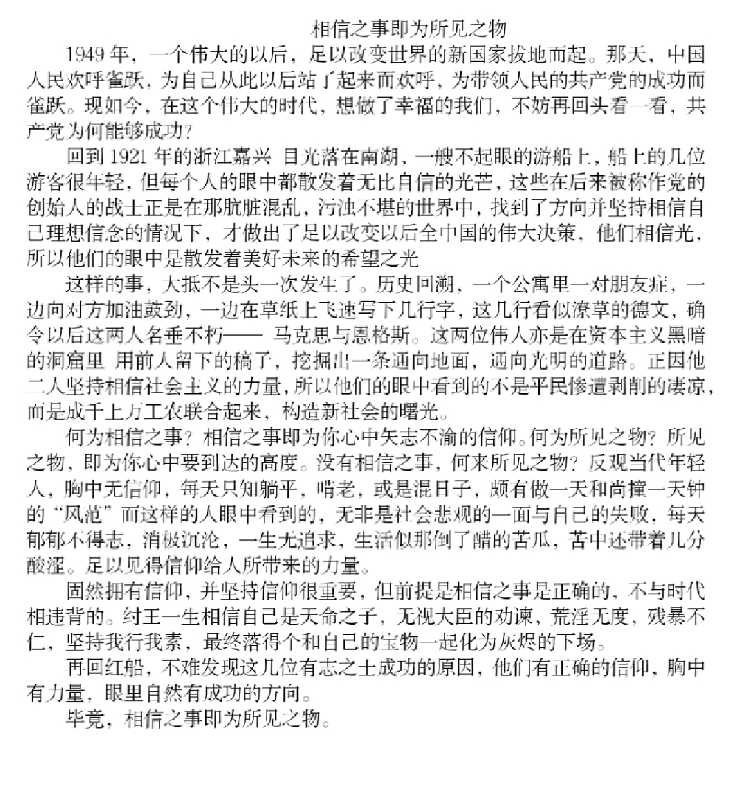 相信之事即为所见之物 热849 类别:议论 发表时间:2021-09-05 20:01 已有 850 次阅读 指导老师:耿明明 所属学校:河南省新郑市第一中学