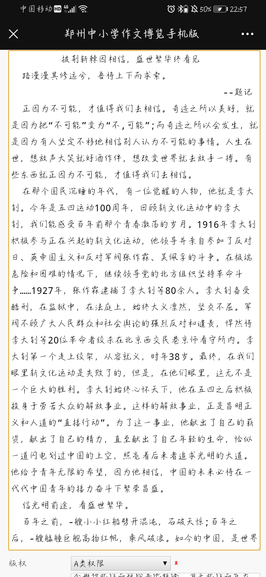 披荆斩棘因相信,盛世繁华终看见 热1321 类别:原创 发表时间:2021-09-04 22:58 已有 1322 次阅读 指导老师:孔艳艳 所属学校:河南省新郑市第一中学