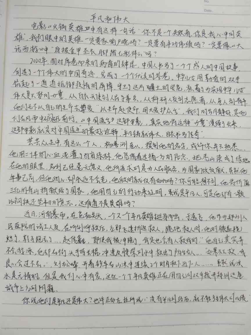 平凡与伟大 热920 类别:抒情 发表时间:2021-09-05 14:06 已有 921 次阅读 指导老师:李媛媛 所属学校:新郑市实验高级中学