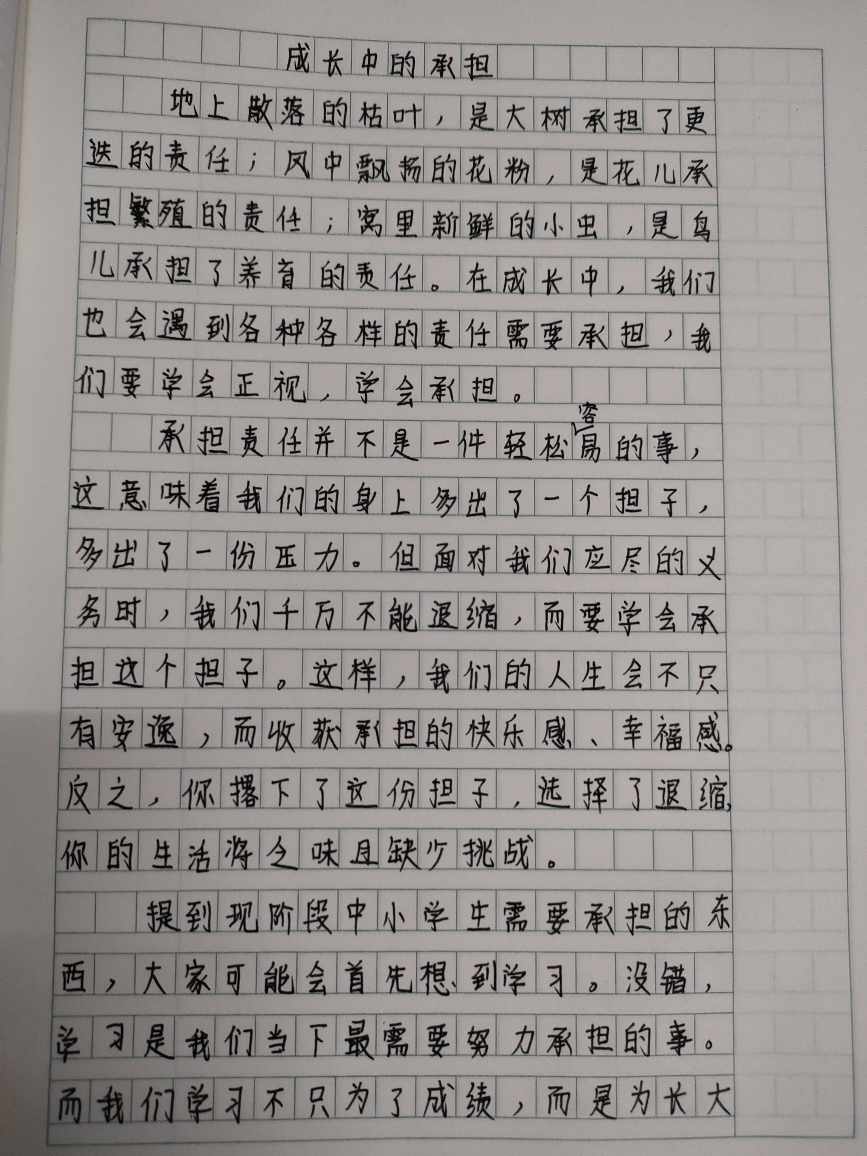成长中的承担 热568 类别:记叙 发表时间:2021-09-05 19:28 已有 569 次阅读 指导老师:马宏基 所属学校:中牟县第二初级中学