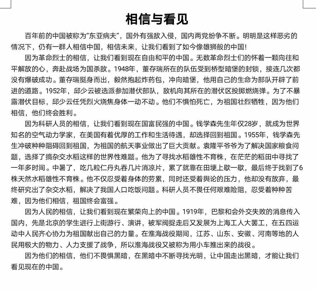相信与看见 热517 类别:议论 发表时间:2021-09-05 22:18 已有 518 次阅读 指导老师:丁莉阳 所属学校:河南省新郑市第一中学