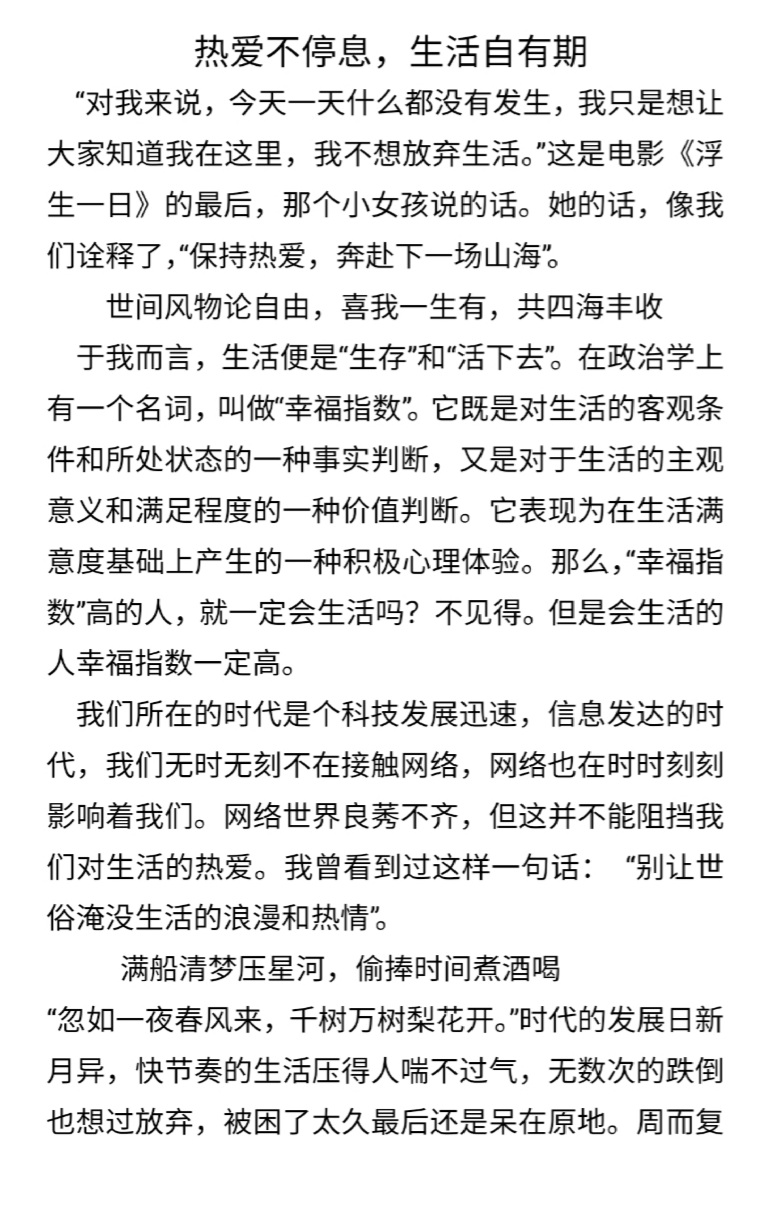 热爱不停息生活不自息 热498 类别:原创 发表时间:2021-09-06 15:34 已有 499 次阅读 指导老师:李勇 所属学校:新郑市实验高级中学