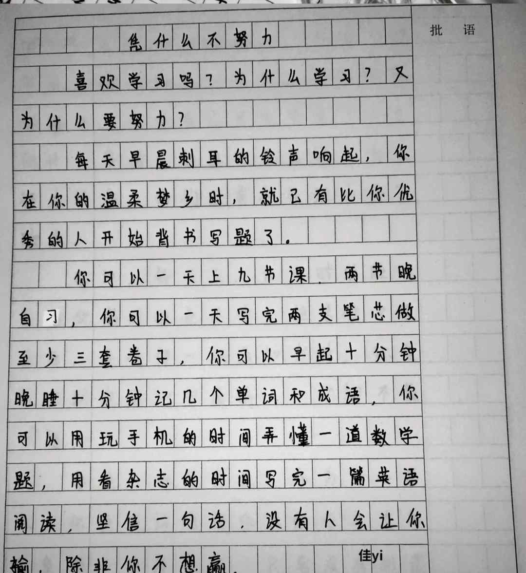 版权说明: A类权限 我谨保证我是此作品的著作权人,并且此作品系首发于郑州教育信息网作文博览频道。我同意郑州教育信息网作文博览频道作为此作品版权的独占代理人。在撤销本委托之前,我不再将此作品投给其他媒体,有关此作品发表和转载等任何事宜,由郑州教育信息网作文博览频道全权负责。未经郑州教育信息网作文博览频道转授权,其他媒体一律不得转载。 |