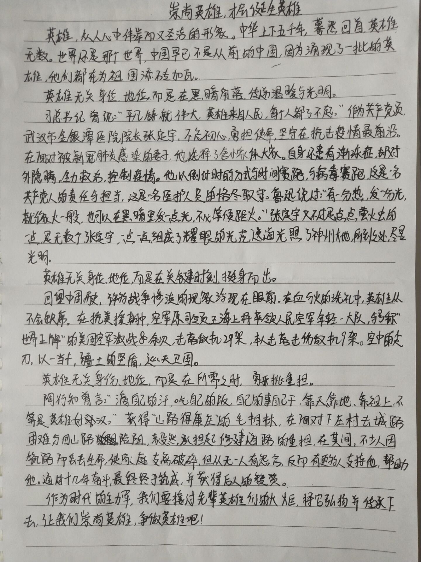 崇尚英雄 热195 类别:其他 发表时间:2021-09-06 18:45 已有 196 次阅读 指导老师:郭耀光 所属学校:新郑市实验高级中学