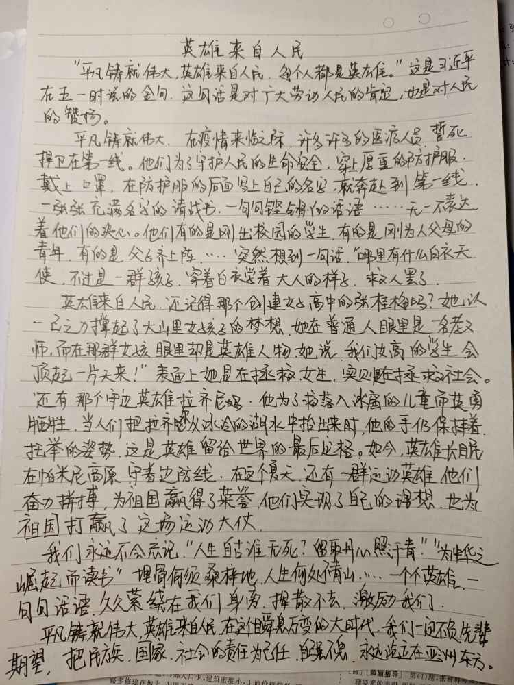英雄来自人民 热775 类别:议论 发表时间:2021-09-06 21:58 已有 776 次阅读 指导老师:龚俊敏 所属学校:新郑市实验高级中学