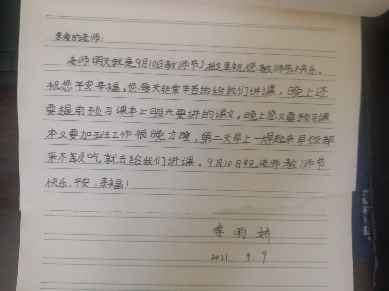 教师节 热416 类别:叙事 发表时间:2021-09-10 07:21 已有 417 次阅读 指导老师:校东平 所属学校:中牟县官渡路小学
