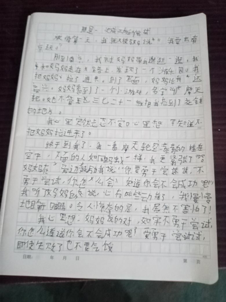 那是一次成功的尝试 热544 类别:记叙 发表时间:2021-09-15 19:09 已有 545 次阅读 指导老师:李伟玲 所属学校:中牟县平安路学校