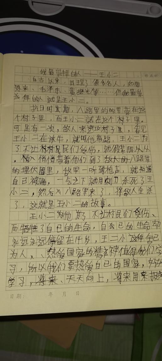 我最崇拜的人—王小二 热737 类别:写人 发表时间:2021-09-09 16:43 已有 738 次阅读 指导老师:朱香婷 所属学校:中牟县平安路学校