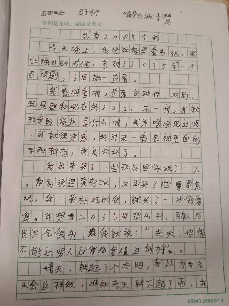 我和2035有个约 热479 类别:叙事 发表时间:2021-09-14 15:46 已有 480 次阅读 指导老师:李慧 所属学校:中牟县平安路学校