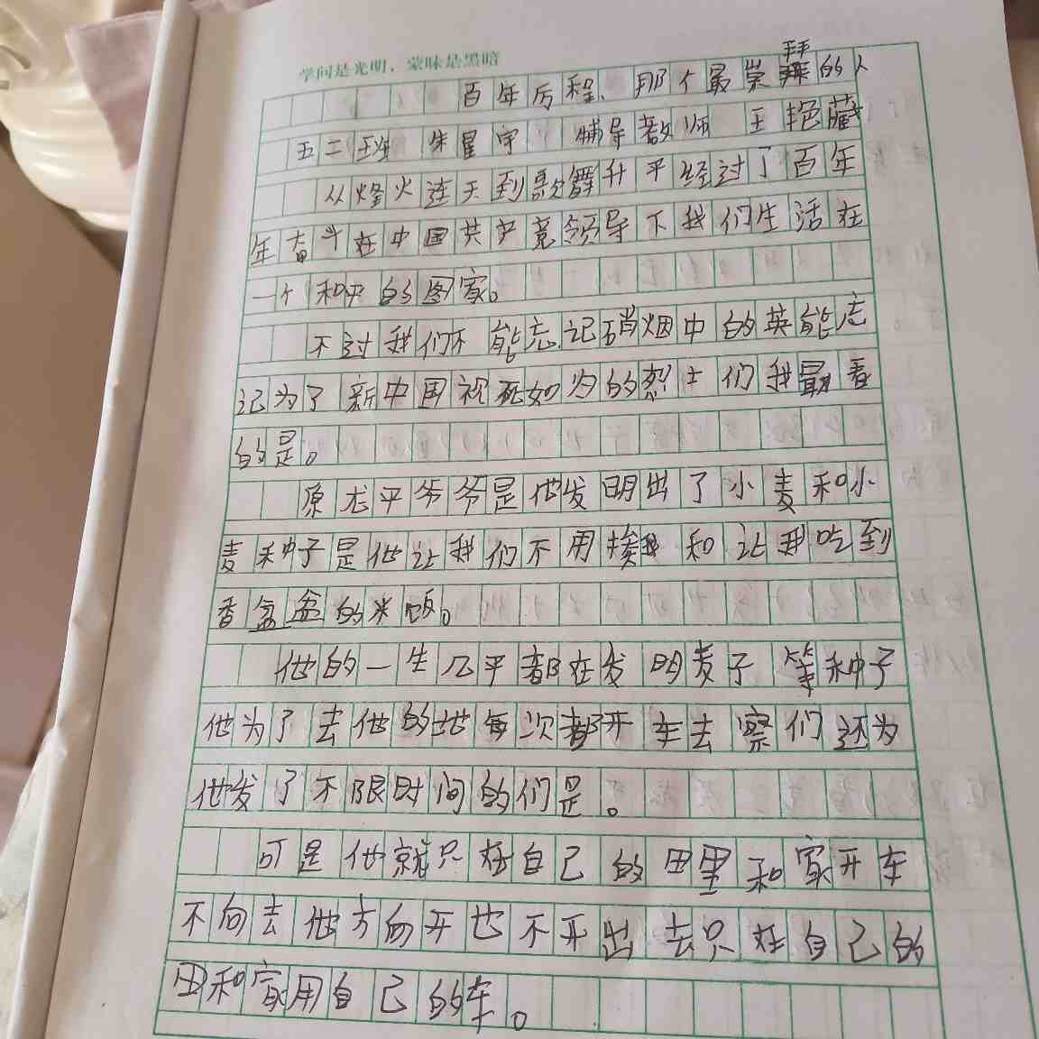 百年历程,那个最崇拜的人 热327 类别:叙事 发表时间:2021-09-14 15:36 已有 328 次阅读 指导老师:王艳藏 所属学校:中牟县平安路学校