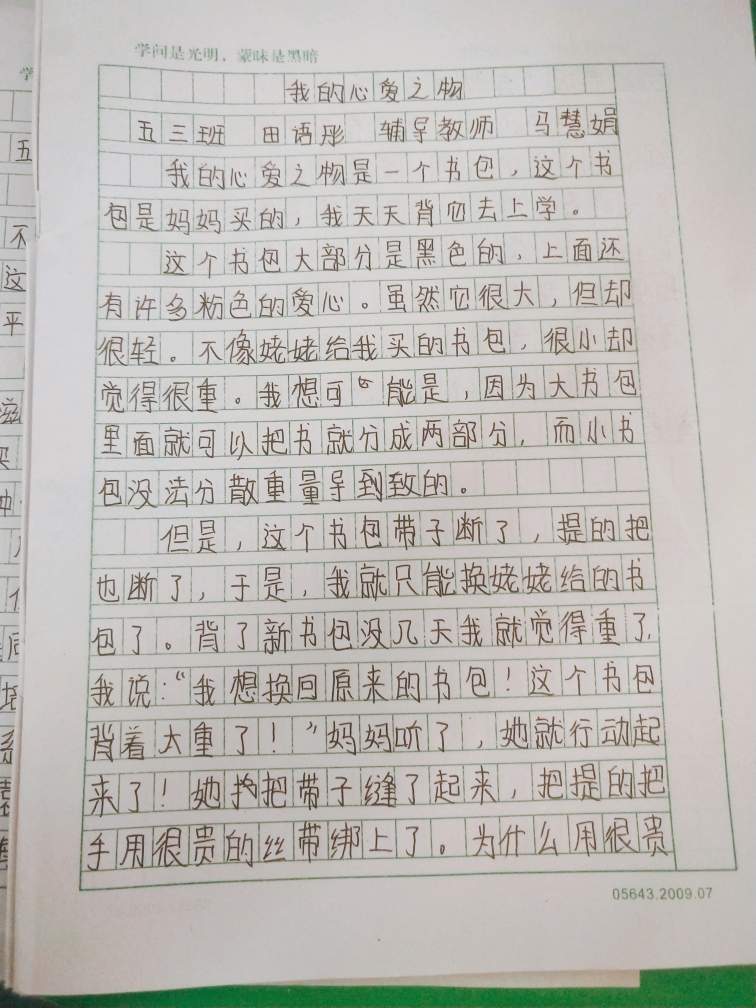 我的心爱之物 热643 类别:状物 发表时间:2021-09-13 16:35 已有 644 次阅读 指导老师:马慧娟 所属学校:中牟县大孟镇中心小学