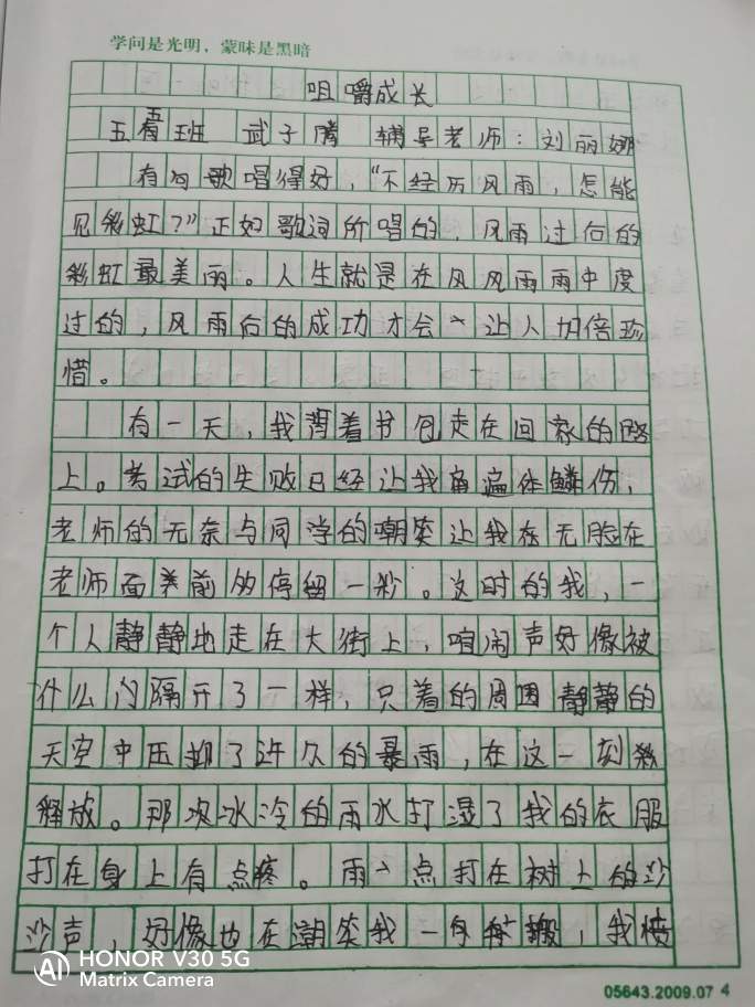 版权说明: A类权限 我谨保证我是此作品的著作权人,并且此作品系首发于郑州教育信息网作文博览频道。我同意郑州教育信息网作文博览频道作为此作品版权的独占代理人。在撤销本委托之前,我不再将此作品投给其他媒体,有关此作品发表和转载等任何事宜,由郑州教育信息网作文博览频道全权负责。未经郑州教育信息网作文博览频道转授权,其他媒体一律不得转载。 |