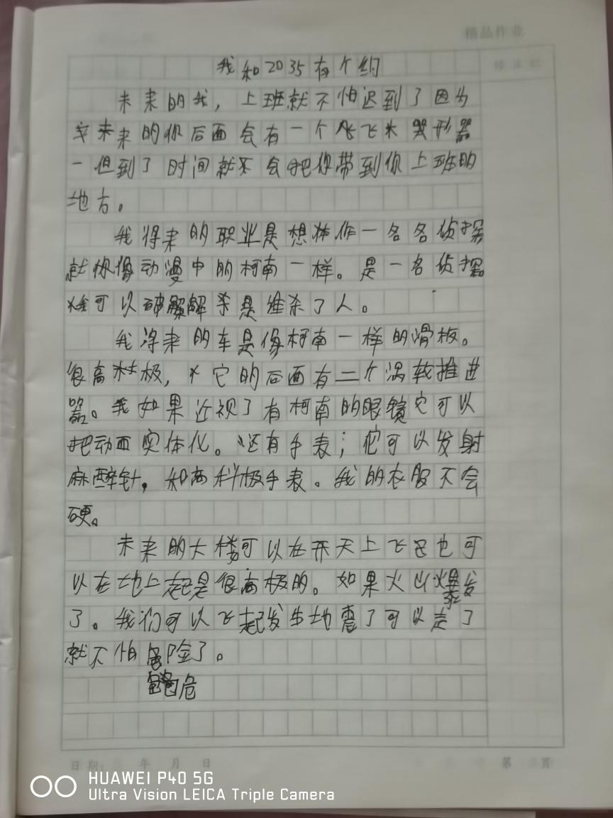 我和2035有个约 热443 类别:议论 发表时间:2021-09-14 15:36 已有 444 次阅读 指导老师:王艳藏 所属学校:中牟县大孟镇中心小学