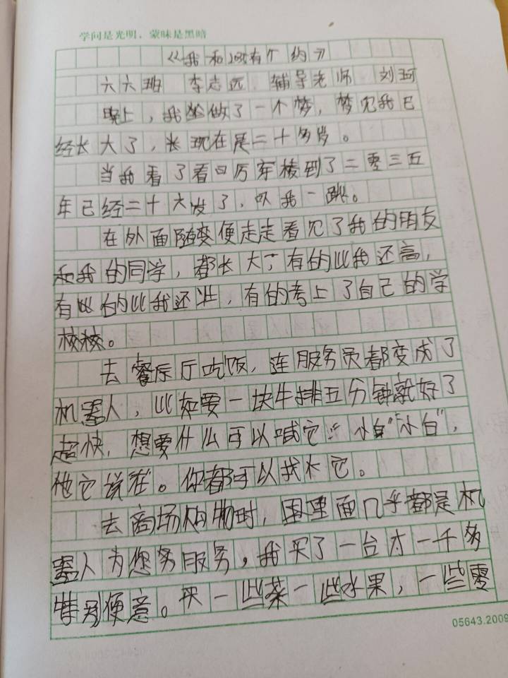 我和2035有个约 热278 类别:叙事 发表时间:2021-09-11 18:29 已有 279 次阅读 指导老师:孟鹤霞 所属学校:中牟县平安路学校