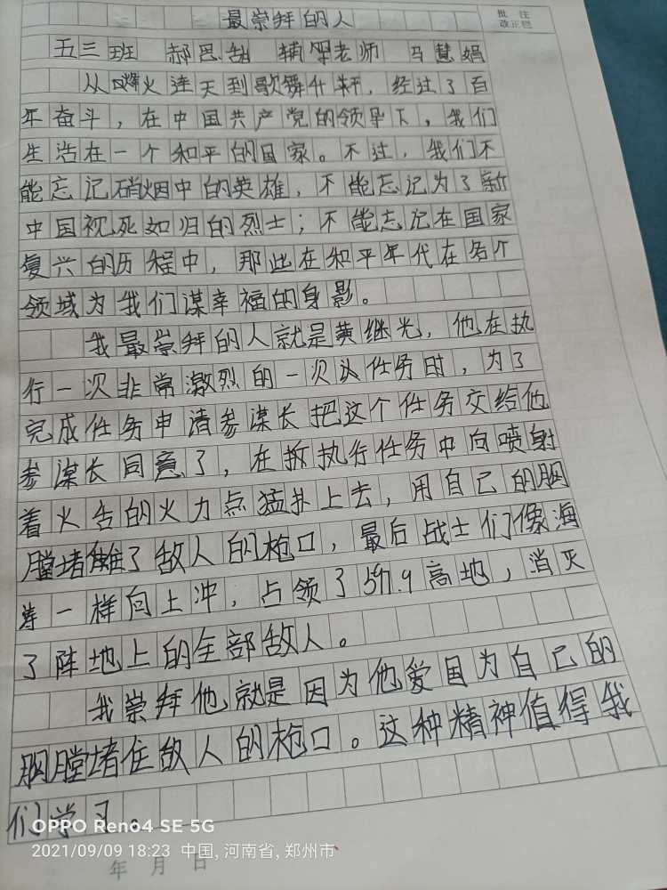 最崇拜的人 热443 类别:写人 发表时间:2021-09-09 18:26 已有 444 次阅读 指导老师:马慧娟 所属学校:中牟县大孟镇中心小学