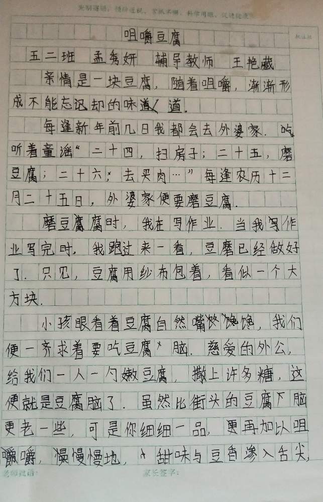 咀嚼豆腐 热557 类别:叙事 发表时间:2021-09-14 17:10 已有 558 次阅读 指导老师:王艳藏 所属学校:中牟县平安路学校