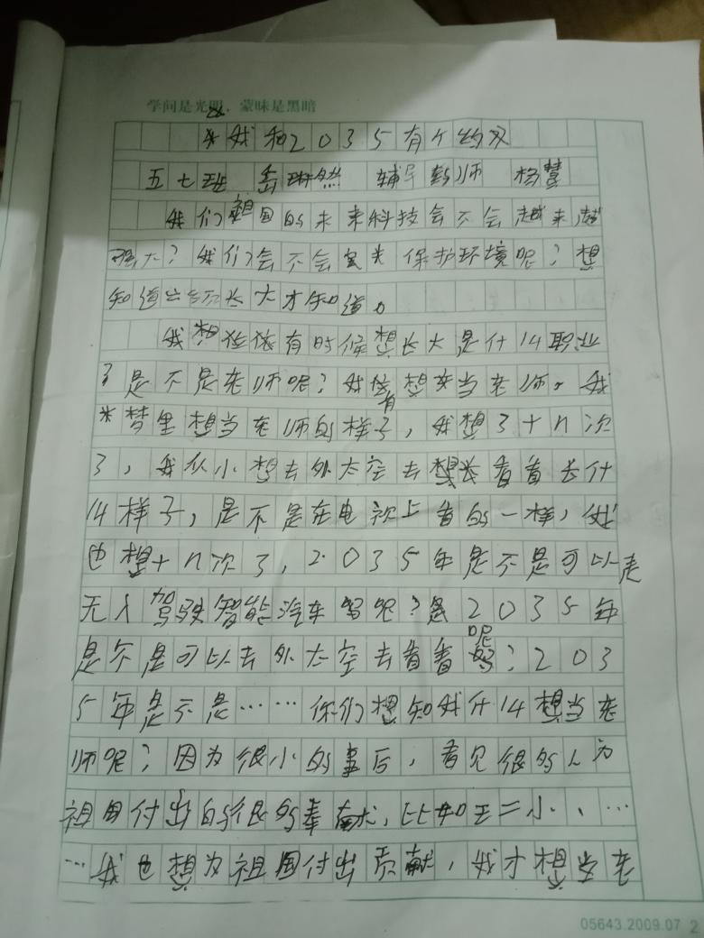 我和2035有个约 热421 类别:叙事 发表时间:2021-09-09 19:13 已有 422 次阅读 指导老师:杨慧 所属学校:中牟县平安路学校
