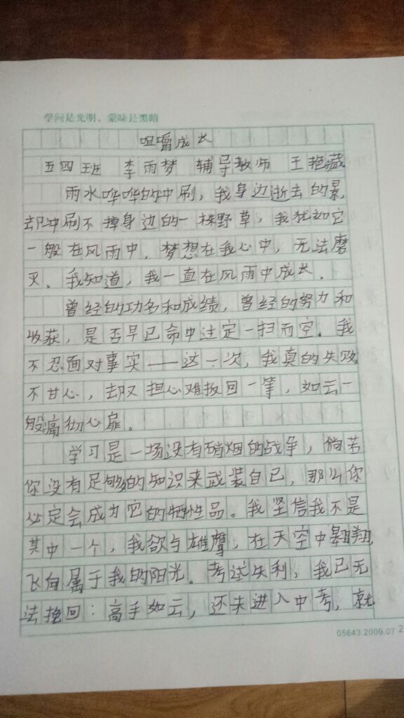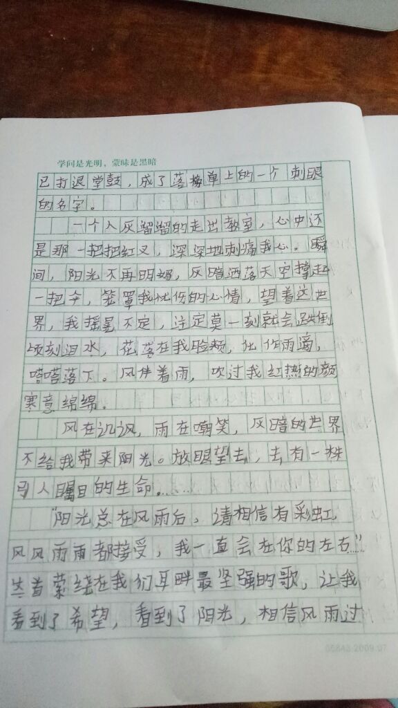 版权说明: A类权限 我谨保证我是此作品的著作权人,并且此作品系首发于郑州教育信息网作文博览频道。我同意郑州教育信息网作文博览频道作为此作品版权的独占代理人。在撤销本委托之前,我不再将此作品投给其他媒体,有关此作品发表和转载等任何事宜,由郑州教育信息网作文博览频道全权负责。未经郑州教育信息网作文博览频道转授权,其他媒体一律不得转载。 |