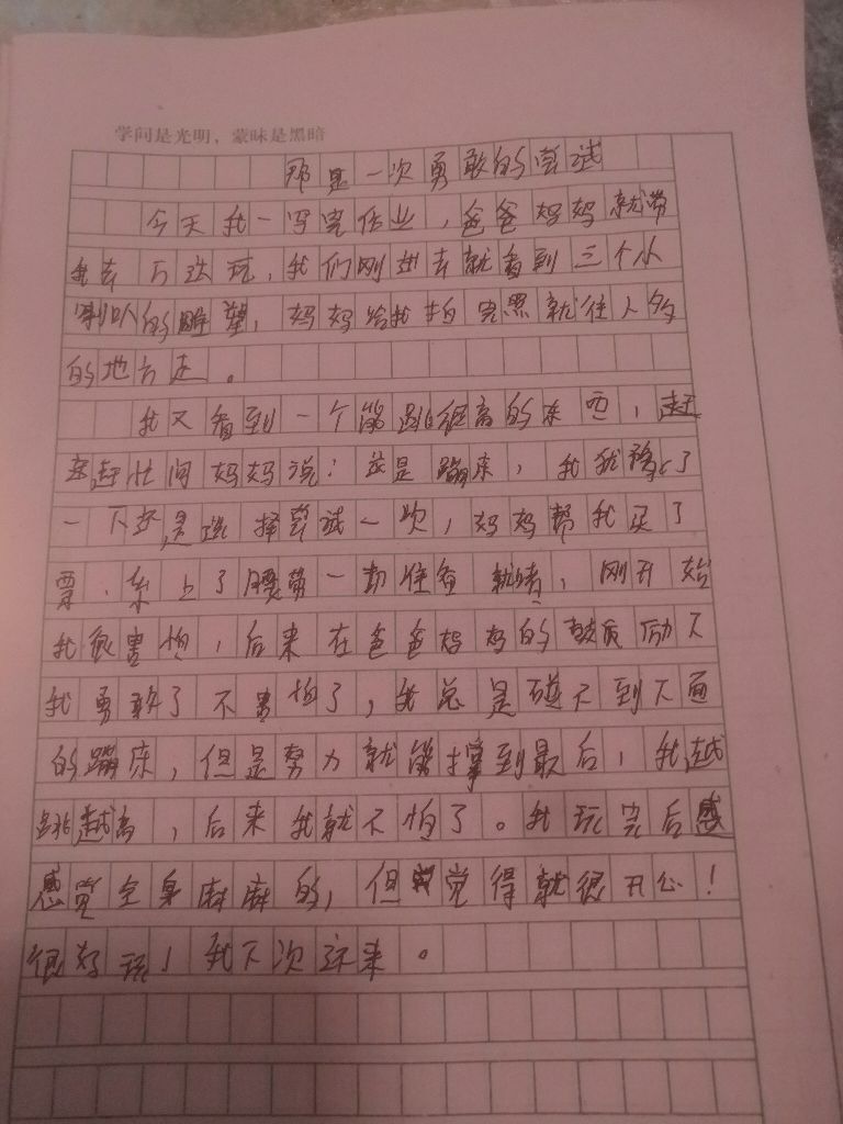 那是一次勇敢的尝试 热535 类别:叙事 发表时间:2021-09-09 20:45 已有 536 次阅读 指导老师:李伟玲 所属学校:中牟县平安路学校