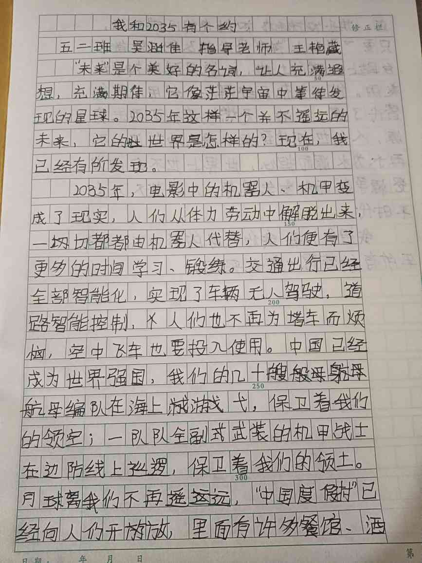 我和2035有个约 热1384 类别:叙事 发表时间:2021-09-10 07:54 已有 1385 次阅读 指导老师:王艳藏 所属学校:中牟县大孟镇中心小学