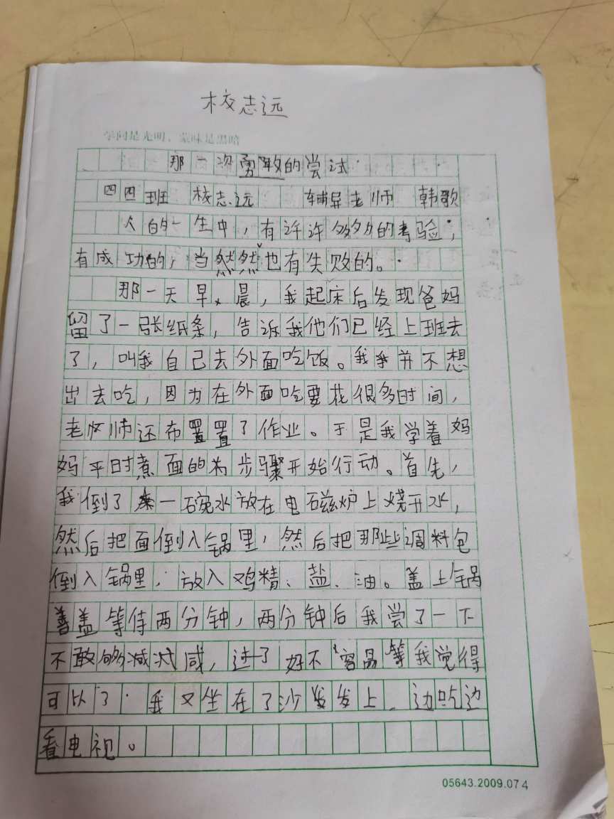 那一次勇敢的尝试 热701 类别:记叙 发表时间:2021-09-09 21:58 已有 702 次阅读 指导老师:韩歌 所属学校:中牟县平安路学校