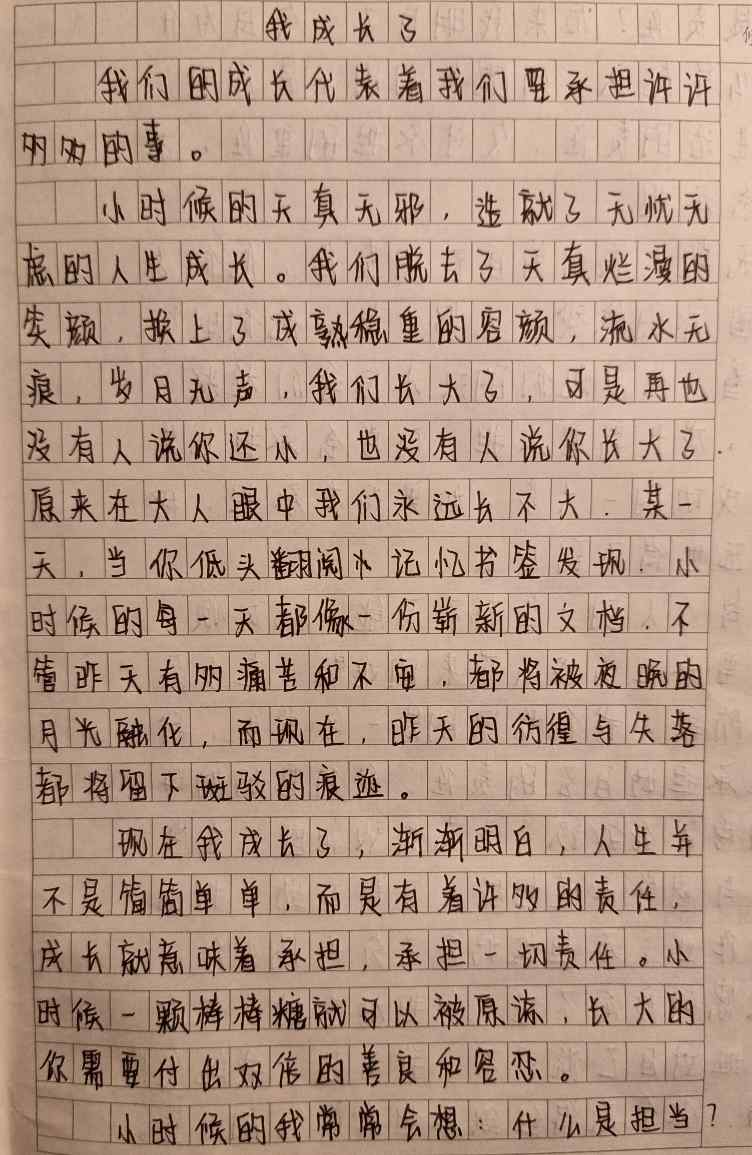 我成长了 热140 类别:记叙 发表时间:2021-09-14 09:41 已有 141 次阅读 指导老师:路月霞 所属学校:中牟县紫薇路中学