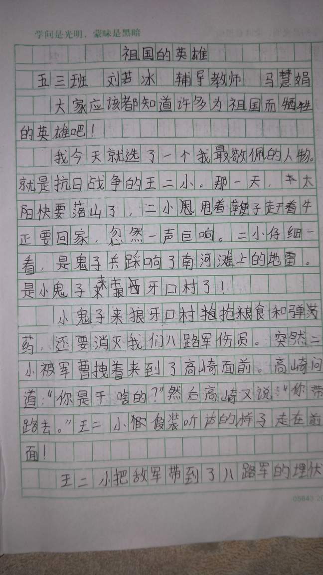 祖国的英雄 热458 类别:写人 发表时间:2021-09-10 11:09 已有 459 次阅读 指导老师:马慧娟 所属学校:中牟县平安路学校