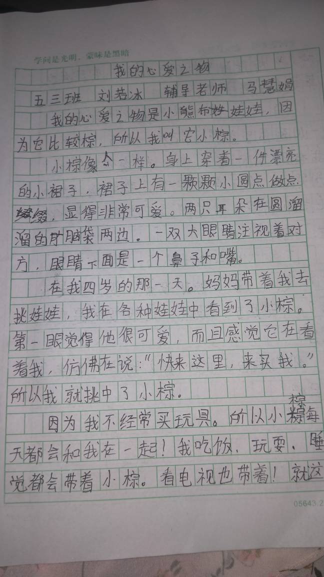 我的心爱之物 热471 类别:状物 发表时间:2021-09-13 18:38 已有 472 次阅读 指导老师:马慧娟 所属学校:中牟县平安路学校