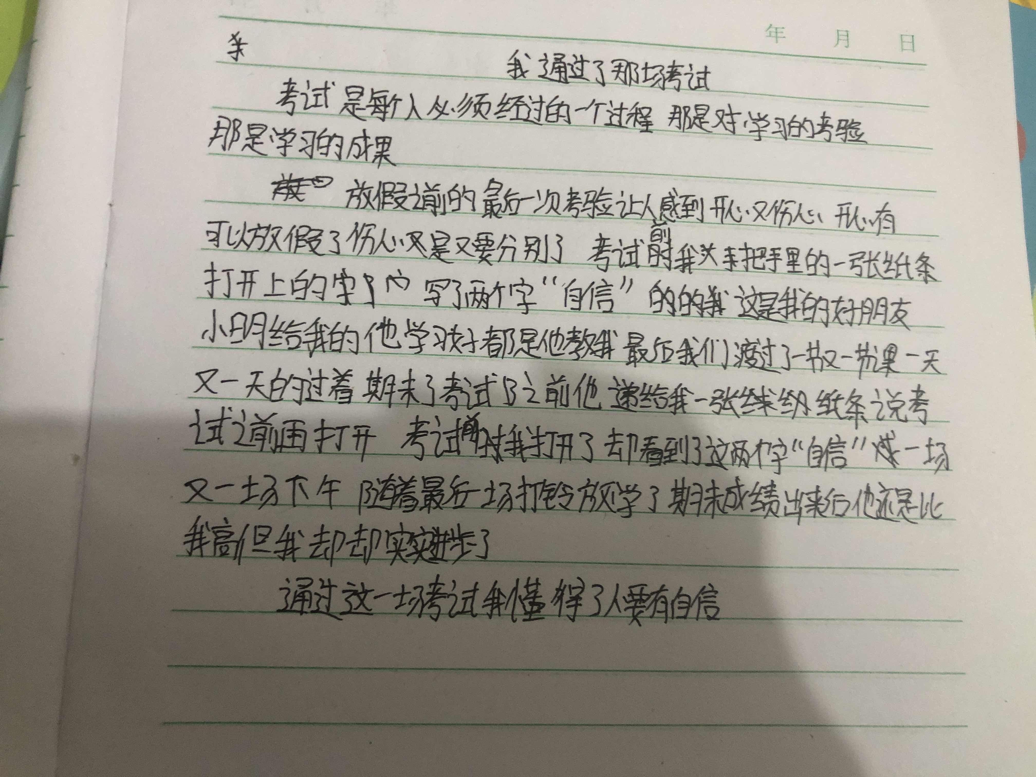 我通过了那场考试 热286 类别:叙事 发表时间:2021-09-13 22:49 已有 287 次阅读 指导老师:冉青青 所属学校:中牟县平安路学校