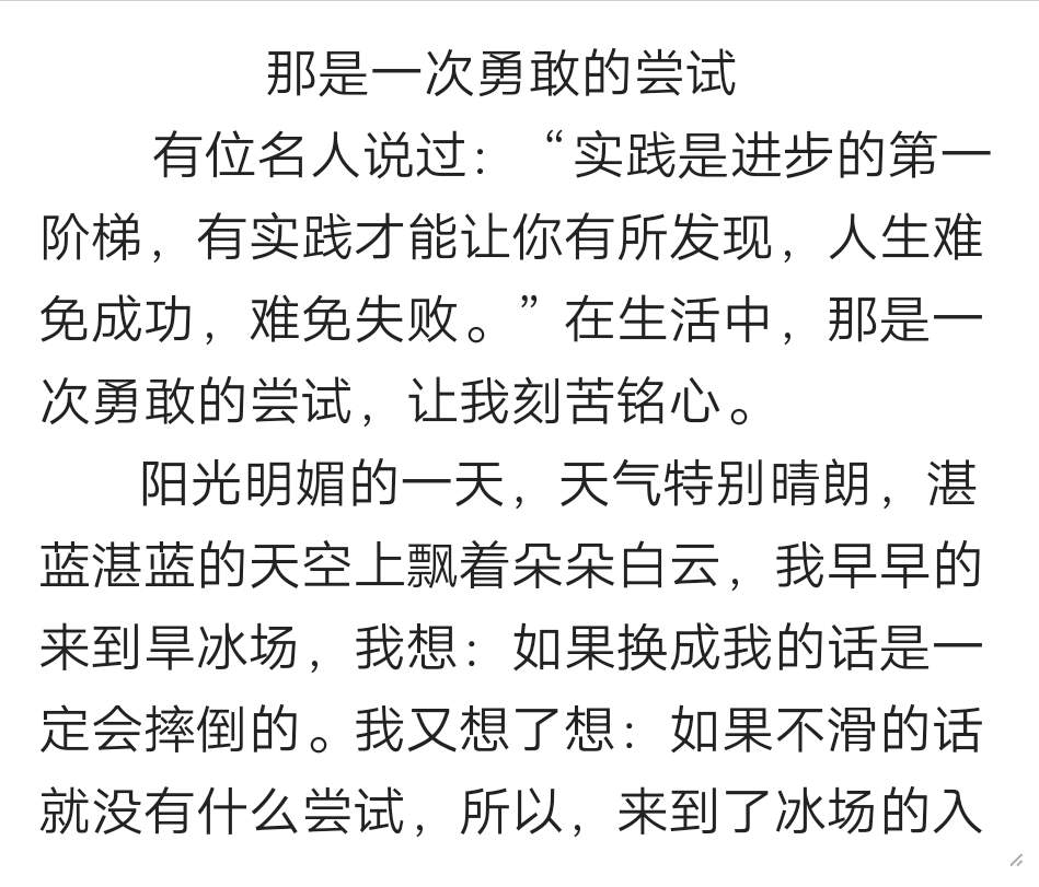 一次勇敢的尝试 热971 类别:写人 发表时间:2021-09-11 20:27 已有 972 次阅读 指导老师:文娟 所属学校:中牟县城东路小学