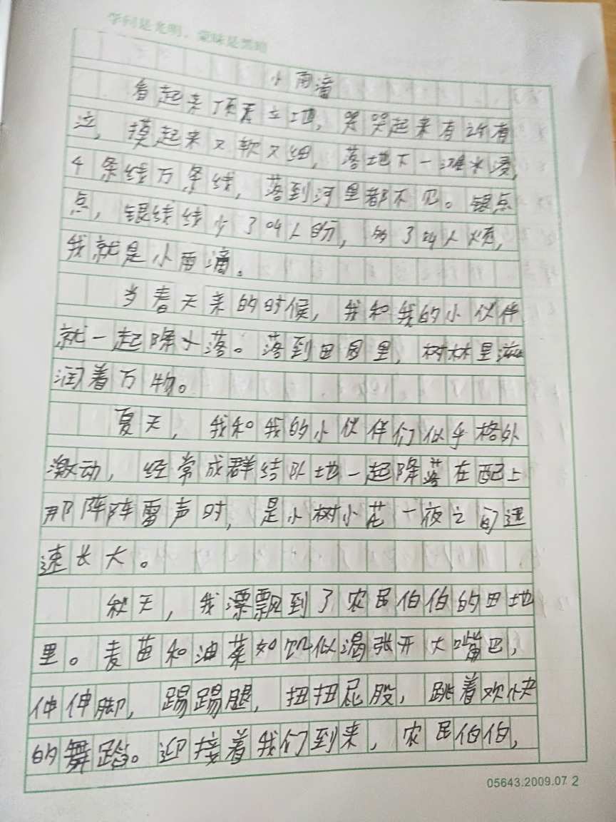 版权说明: A类权限 我谨保证我是此作品的著作权人,并且此作品系首发于郑州教育信息网作文博览频道。我同意郑州教育信息网作文博览频道作为此作品版权的独占代理人。在撤销本委托之前,我不再将此作品投给其他媒体,有关此作品发表和转载等任何事宜,由郑州教育信息网作文博览频道全权负责。未经郑州教育信息网作文博览频道转授权,其他媒体一律不得转载。 |