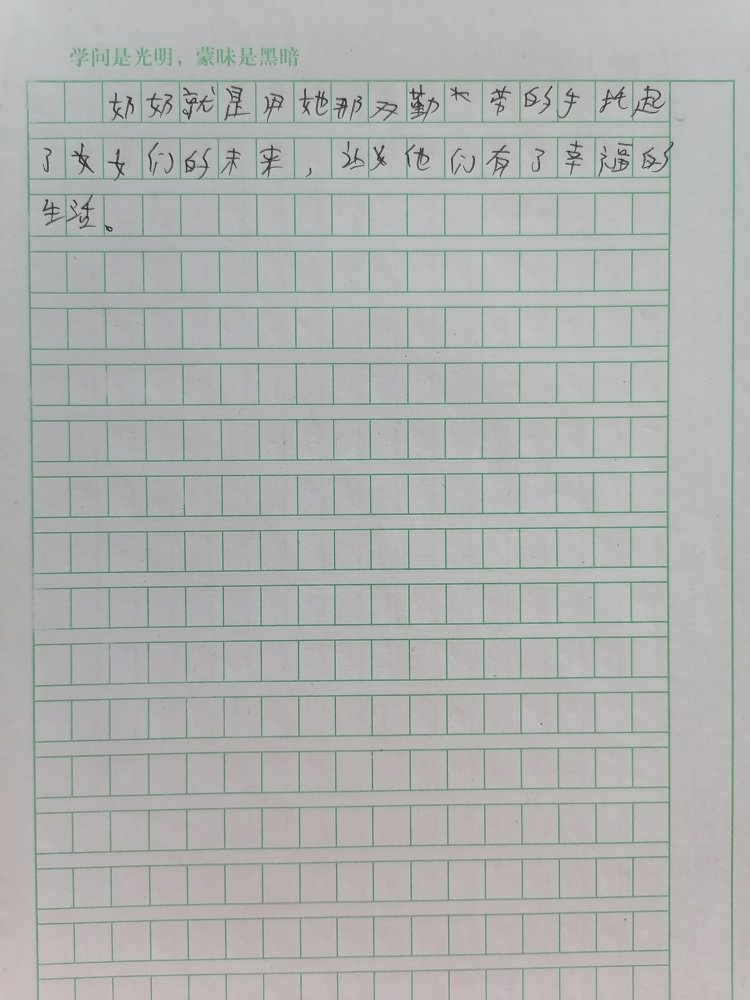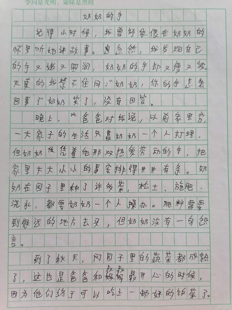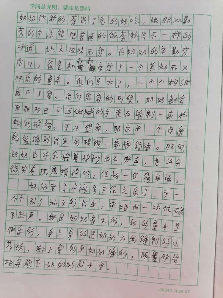 奶奶伴我温暖前行 热358 类别:叙事 发表时间:2021-09-12 17:37 已有 359 次阅读 指导老师:朱闪闪 所属学校:中牟县平安路学校