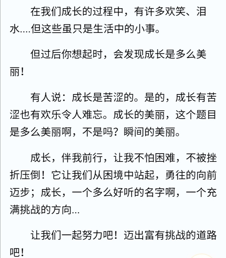 温暖伴我成长 热406 类别:叙事 发表时间:2021-09-14 12:41 已有 407 次阅读 指导老师:武丹阳 所属学校:中牟县紫薇路中学